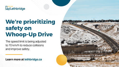 “The current 90 km/h speed limit on Whoop-Up Drive no longer reflects modern safety standards,” says Joel Sanchez, Director of Infrastructure Services. “Adjusting the limit to 70 km/h reduces the risk of tragic collisions and makes sure every driver, passenger and first responder has a safer journey across the river.”