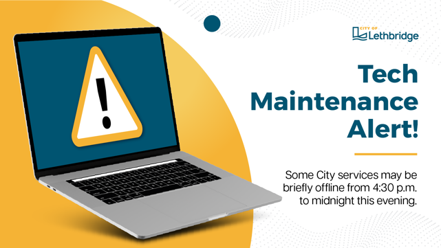 On Wednesday, November 5, from 4:30 p.m. to midnight, the City of Lethbridge will be doing some behind-the-scenes tech maintenance to keep our systems safe and running smoothly.