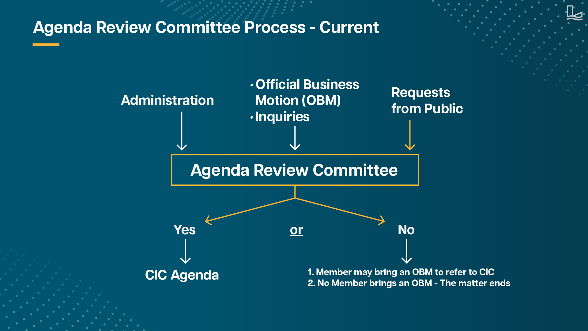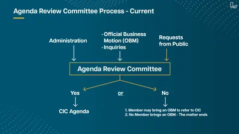 For those items that may not be added to a CIC agenda, a Member of Council may bring forward an Official Business Motion to refer the matter to a CIC. If this does not occur, then the matter ends. (refer to below image).