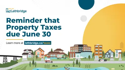 The City of Lethbridge is reminding all Lethbridge property owners that their 2025 property taxes are due by Monday, June 30. We ask those coming to City Hall to pay to please be patient if there are lines and to please be courteous to our City staff who are here to help you.