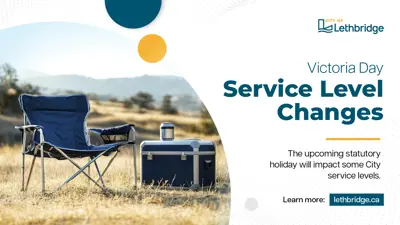 Monday, May 19, is Victoria Day. The City of Lethbridge will have service level changes.