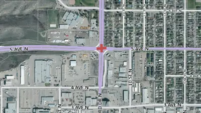 Beginning July 16, 2024, a four-way stop will be used to control traffic at the Stafford Drive North and 5 Avenue North intersection, while intersection improvements are underway.