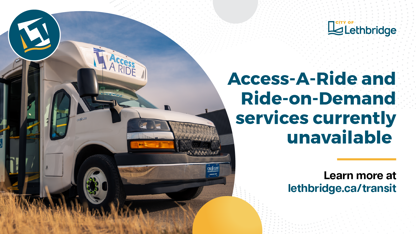 Access-A-Ride service is operational again. Lethbridge Transit is working to accommodate pre-scheduled trips and incoming requests as best as possible.