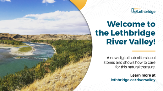 The City of Lethbridge is excited to share the new River Valley webpage. It’s a simple, engaging way to learn about one of our most valued natural spaces. The site brings together stories, local knowledge and practical tips to help residents connect with the River Valley.