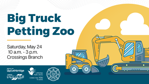 At the Library Crossings Branch for our Big Truck Petting Zoo!