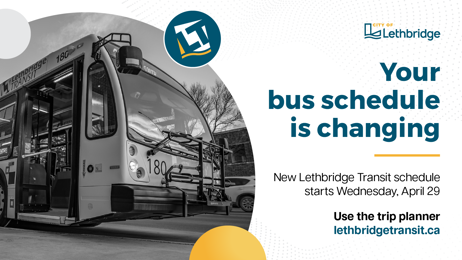 Starting Wednesday, April 29, Lethbridge Transit will implement new schedules across all routes. These changes are being made to improve service reliability and on-time performance.