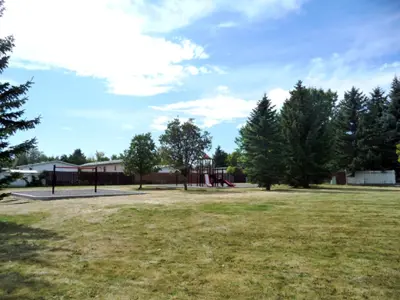 This is a small, mature neighbourhood park featuring a playground and open space. The playground features slides, swings, a climbing apparatus and a separate climbing bar.