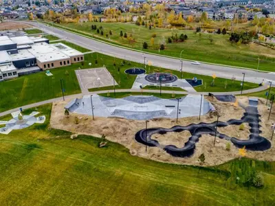 Watermark Park is an exciting and unique community park in west Lethbridge that focuses on healthy and active lifestyles. The inclusive park is also home to the new Senator Joyce Fairbairn Middle School. The park features sports fields, a skateboard plaza, a BMX pump track, fitness equipment and so much more.